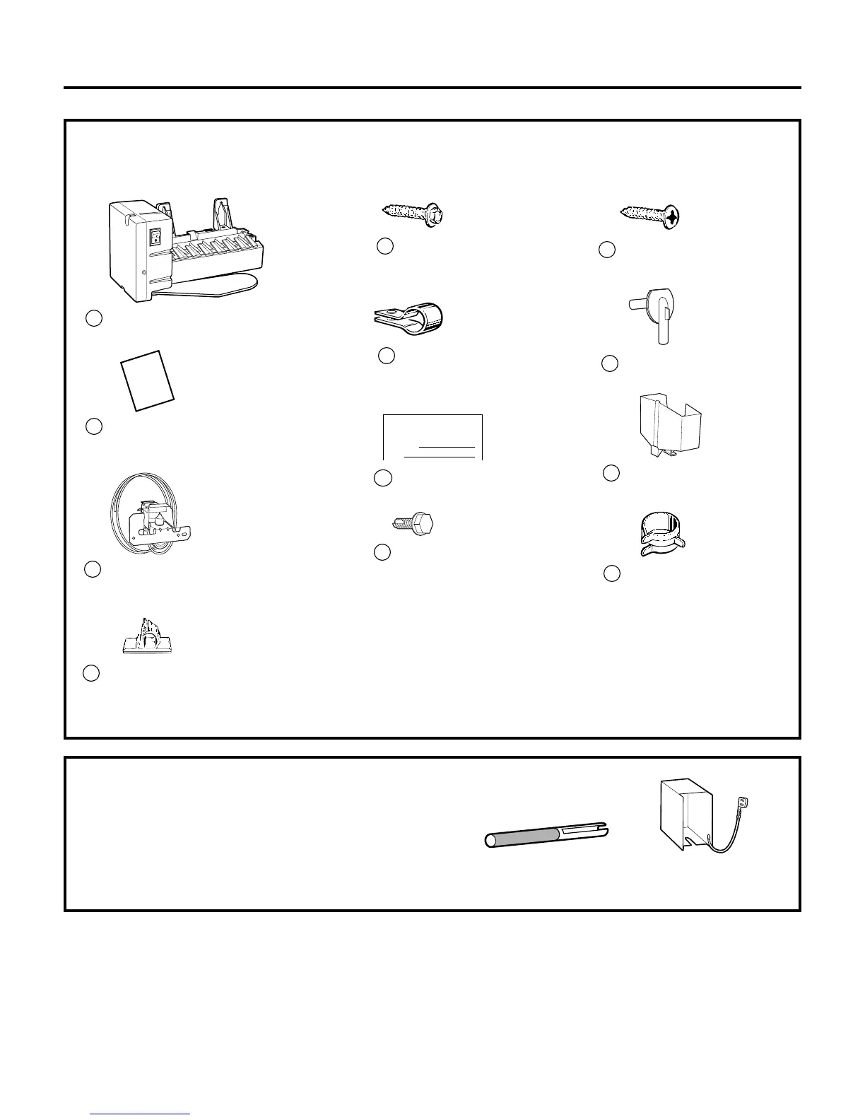 The following are a list of the parts from the kit that will be needed to install the icemaker.