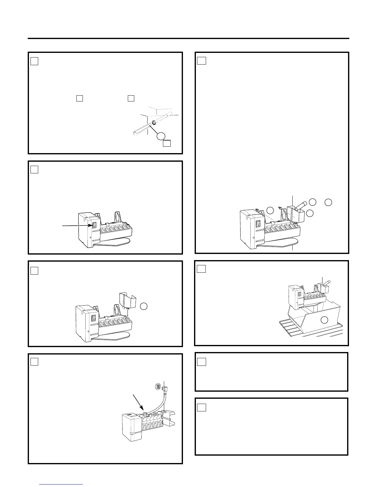 la taza de llenado (D). Cuelgue la máquina de hielos