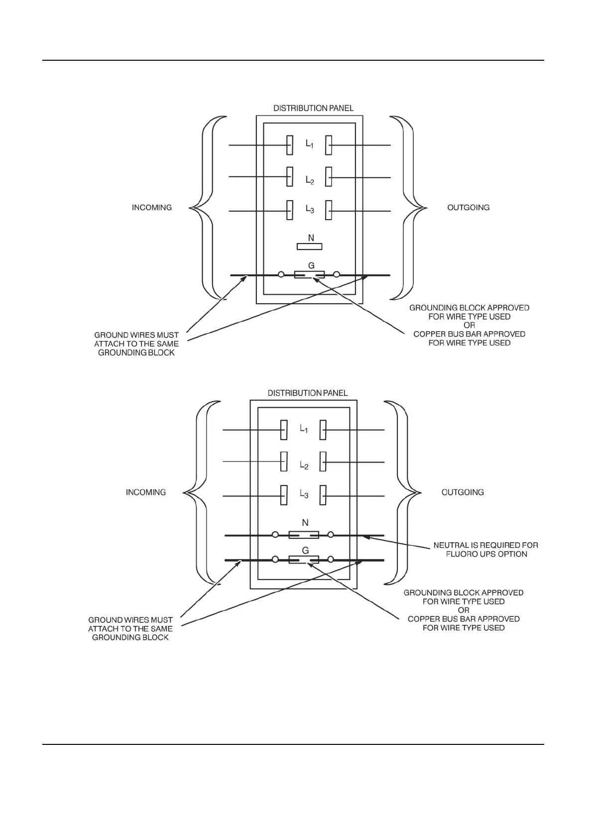 Illustration 6-35: Ground connection at distribution panel without Fluoro UPS option