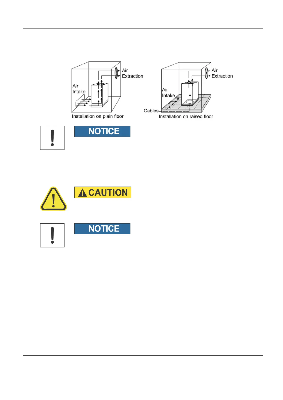 If the UPS is placed on a raised floor, the airflow for UPS cooling should enter from underneath