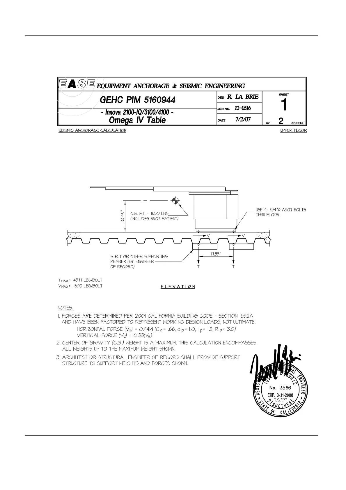 GE Innova 4100 - Omega IV Table - Upper Floor