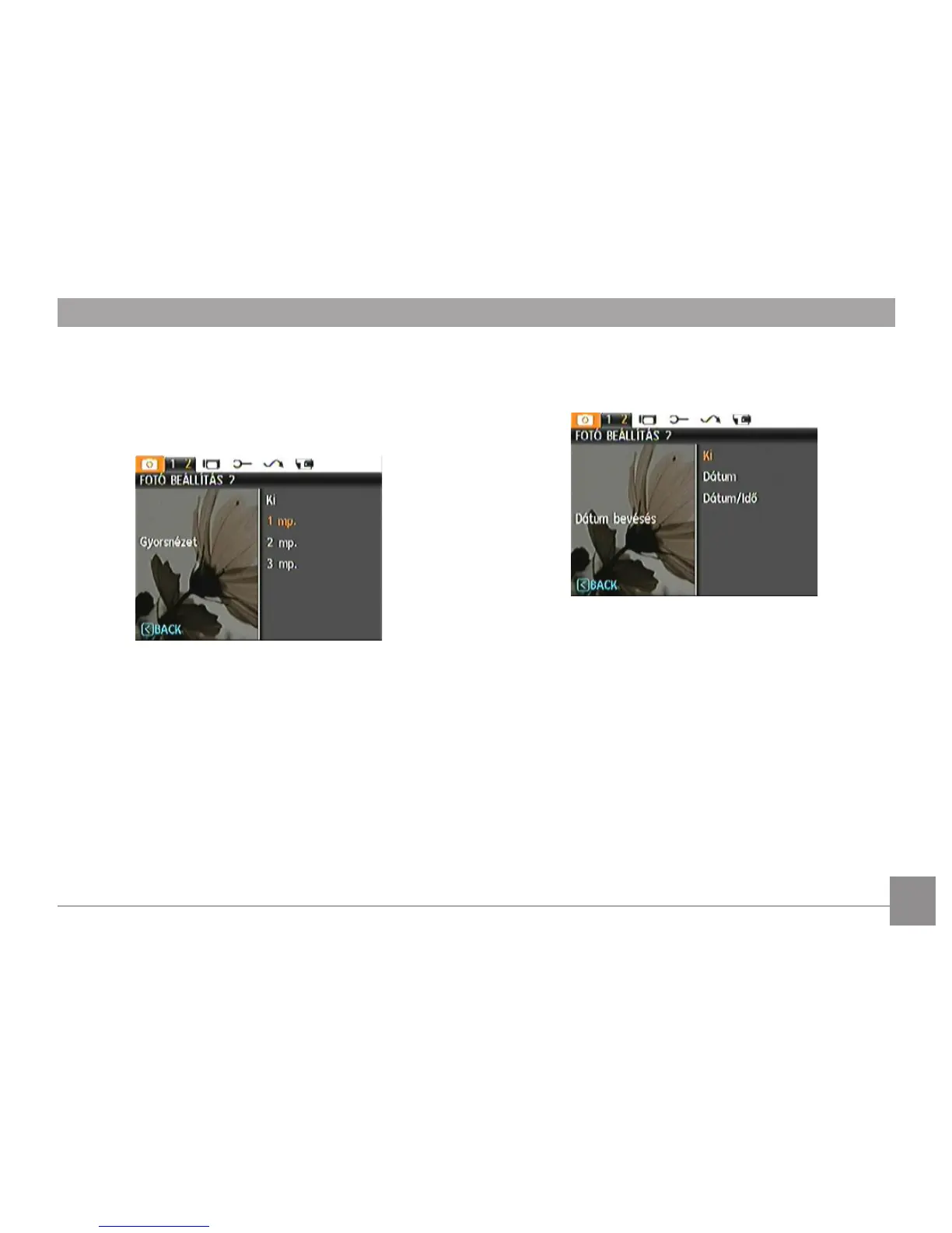 Ez a beállítás a gyors fotó áttekintésre vonatkozik közvetlenül