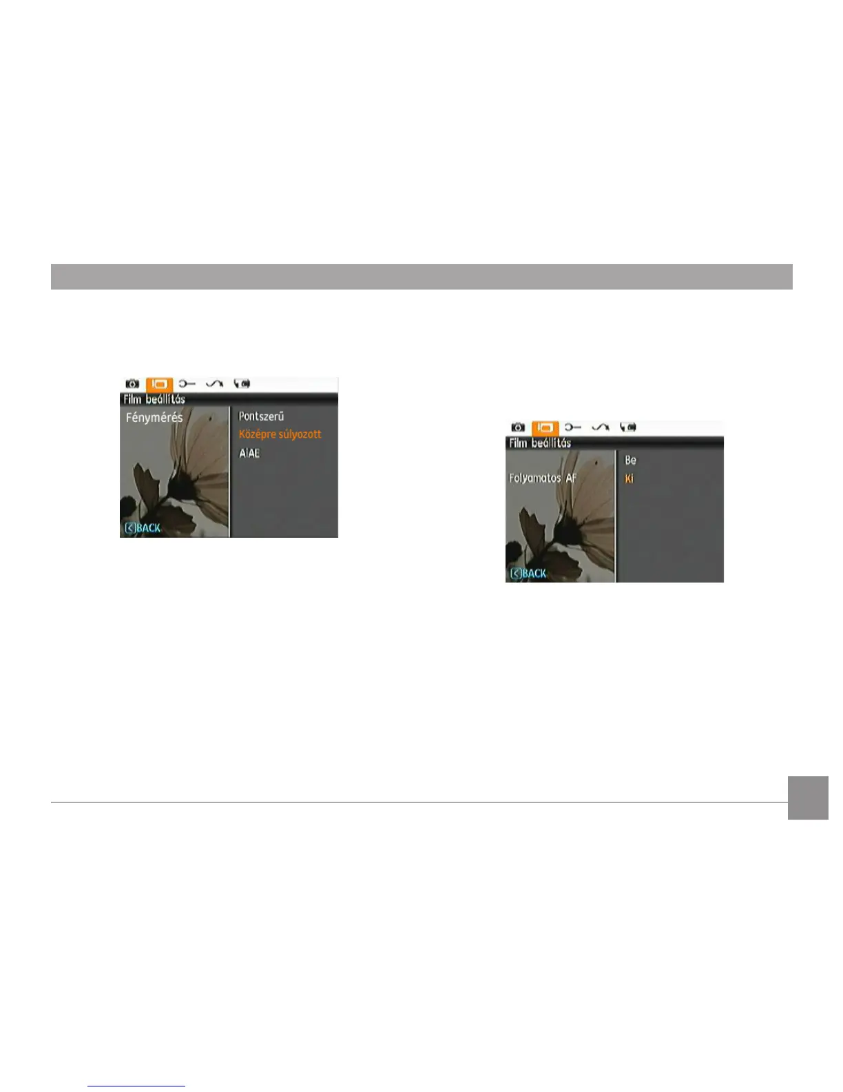 A folyamatos AF bekapcsolása után a kamera automatikusan