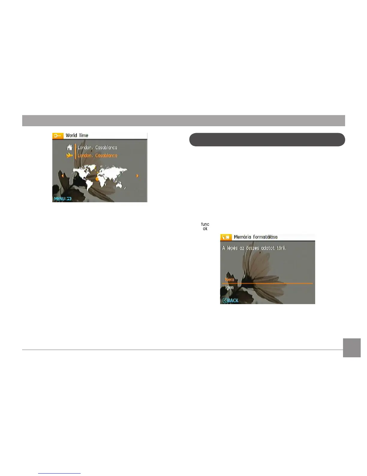 Megjegyzés: a memória formatálása funkció törli az
