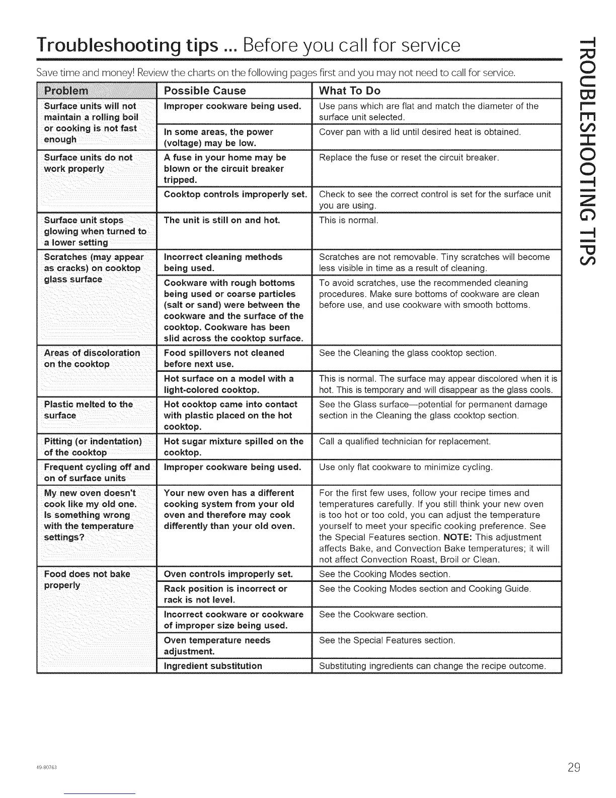 Save time and money! Review the charts on the following pages first and you may not need to call for service.