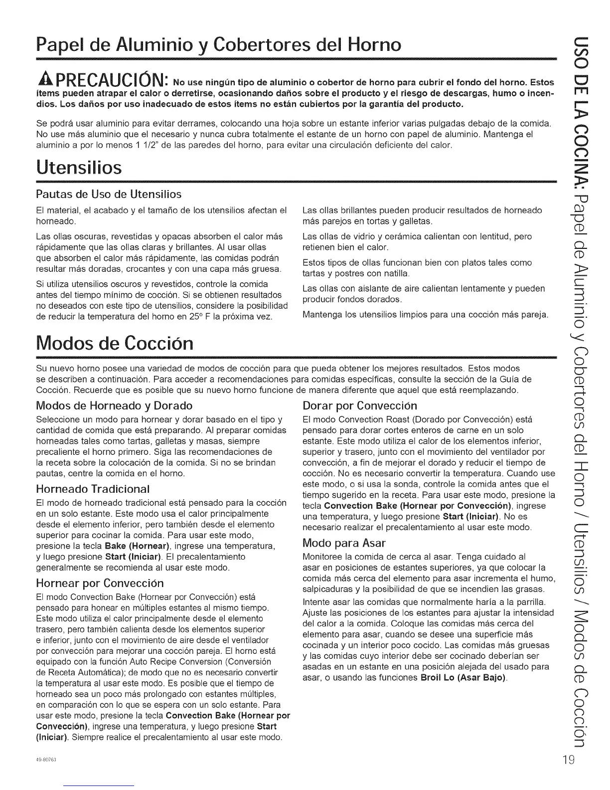 Su nuevo horno posee una variedad de modos de cocci6n para que pueda obtener los mejores resultados. Estos modos