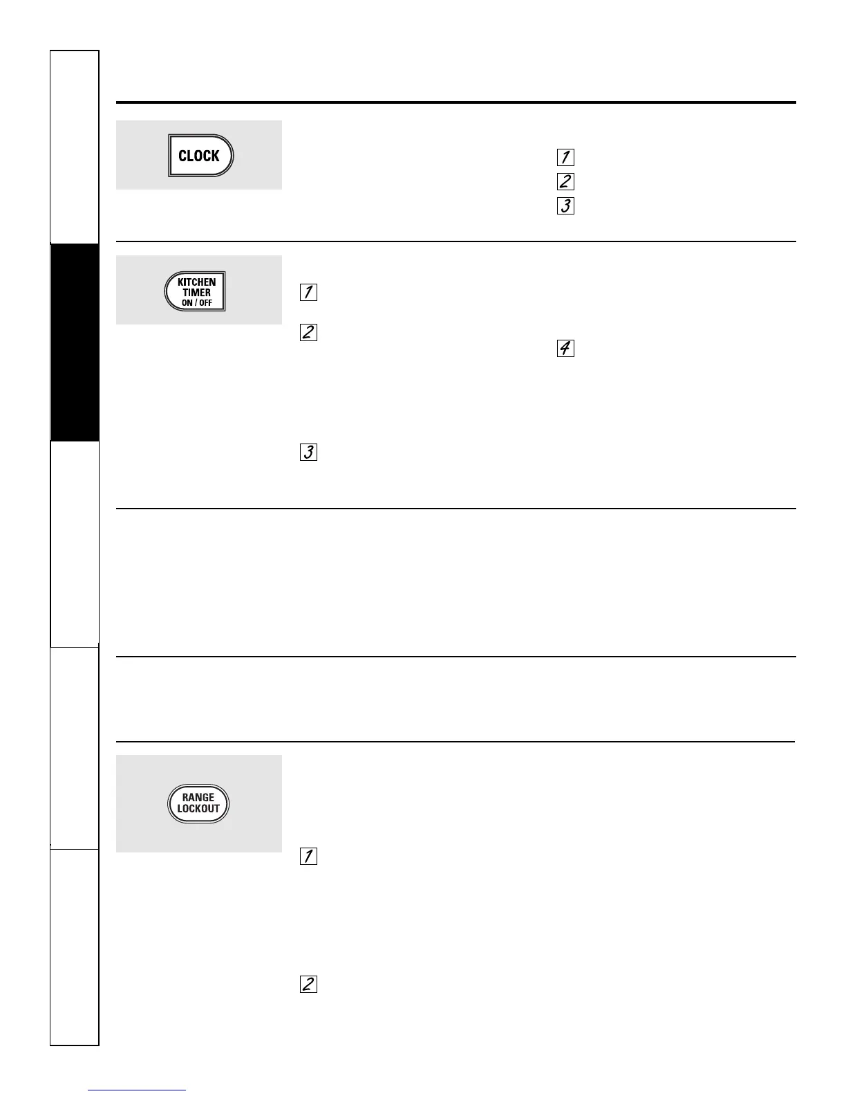 Using the clock, kitchen timer and control lockout.