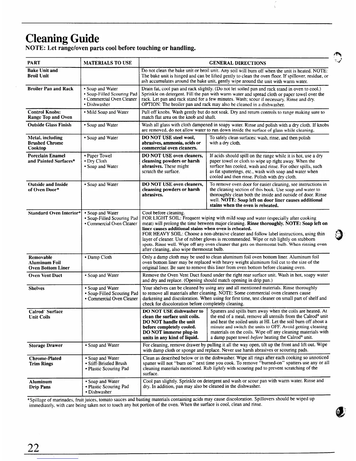 *Soilia~e of marinades, fruit iuices, tomato sauces and basting materials containing acids may cause discoloration. Spillovers should be wiped up