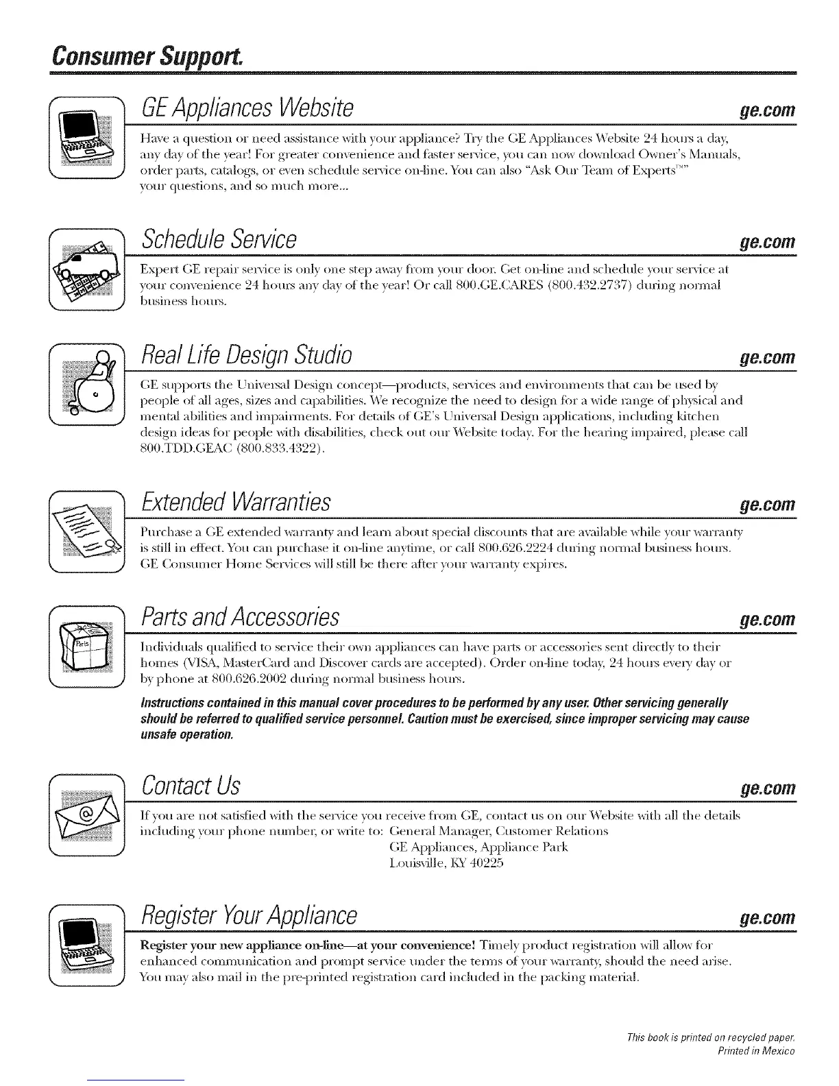 If yon are not satisfied with the service w)u receive fl'om GE, contact us on our Website with all the details