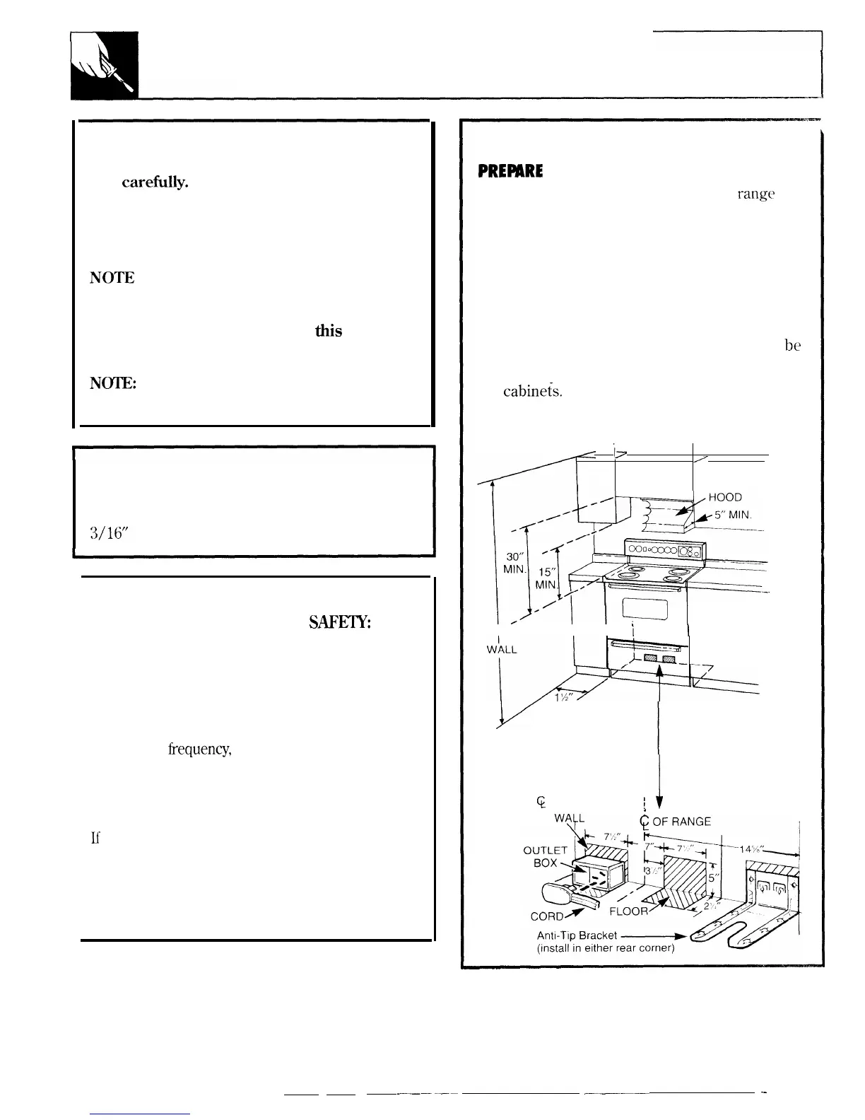 range is in position, flexible service conduit or cord
