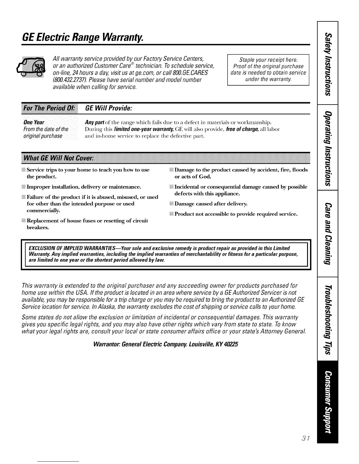 on-line, 24 hours a day, visit us at ge.com, or call 800.GE.CARES