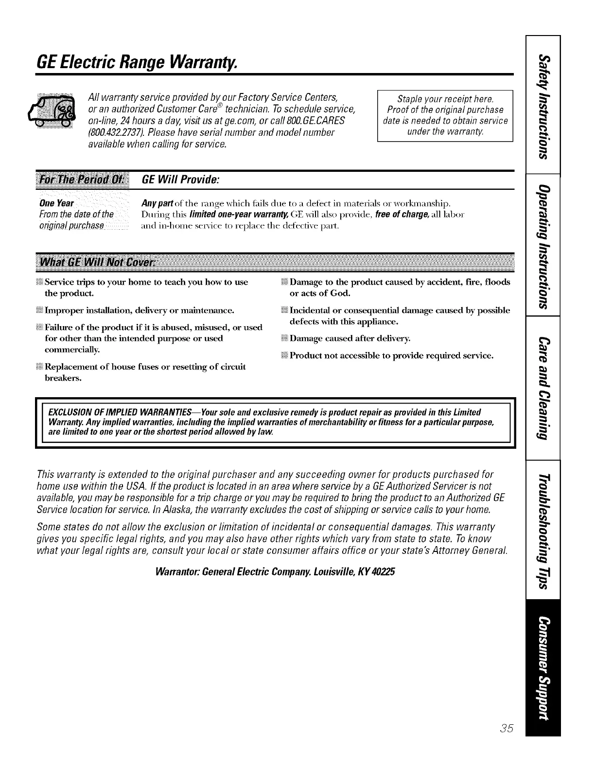 Warrantor: General Electric Company.Louisville,KY40225
