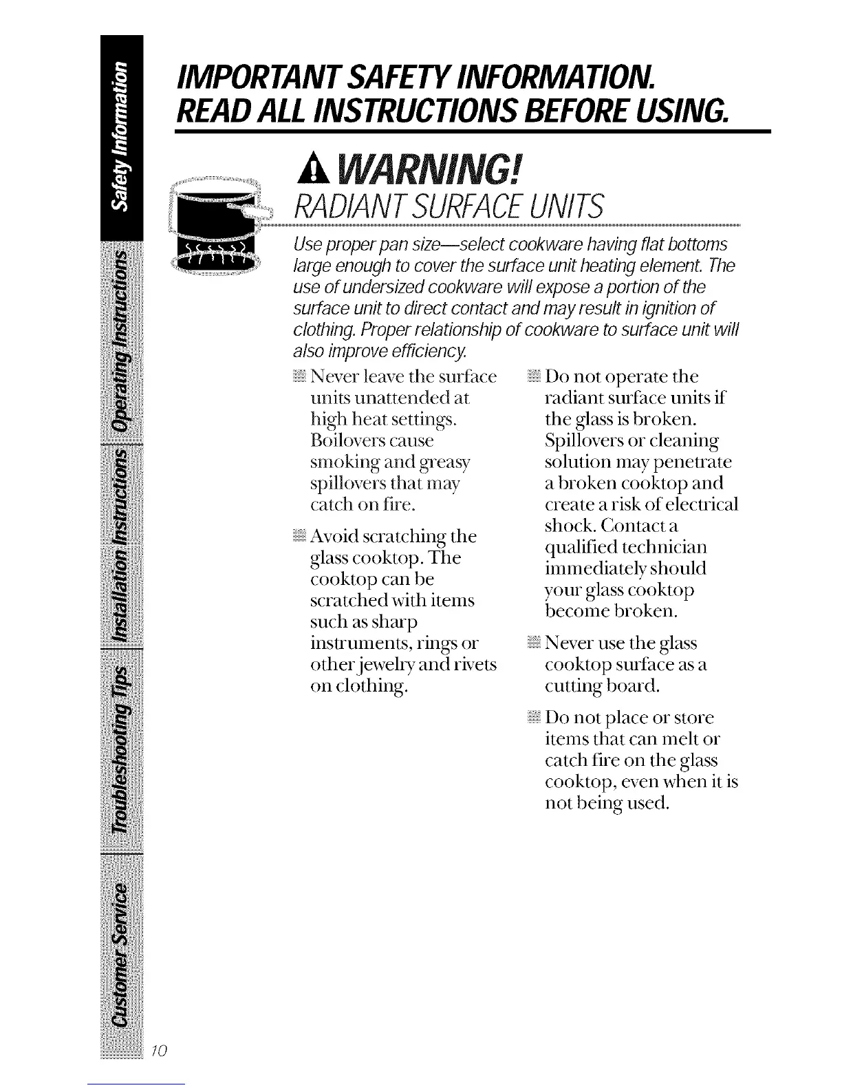 surface unit to direct contact and may result in ignition of