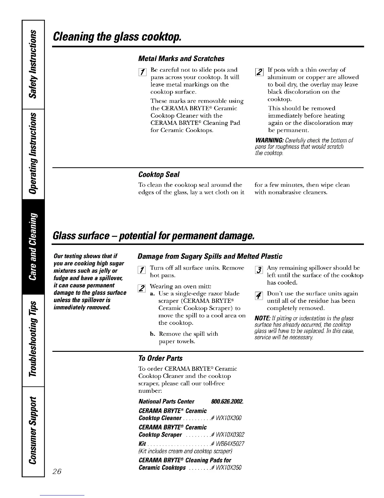 edges of the glass, lay a wet cloth on it with nonabrasive cleaners.