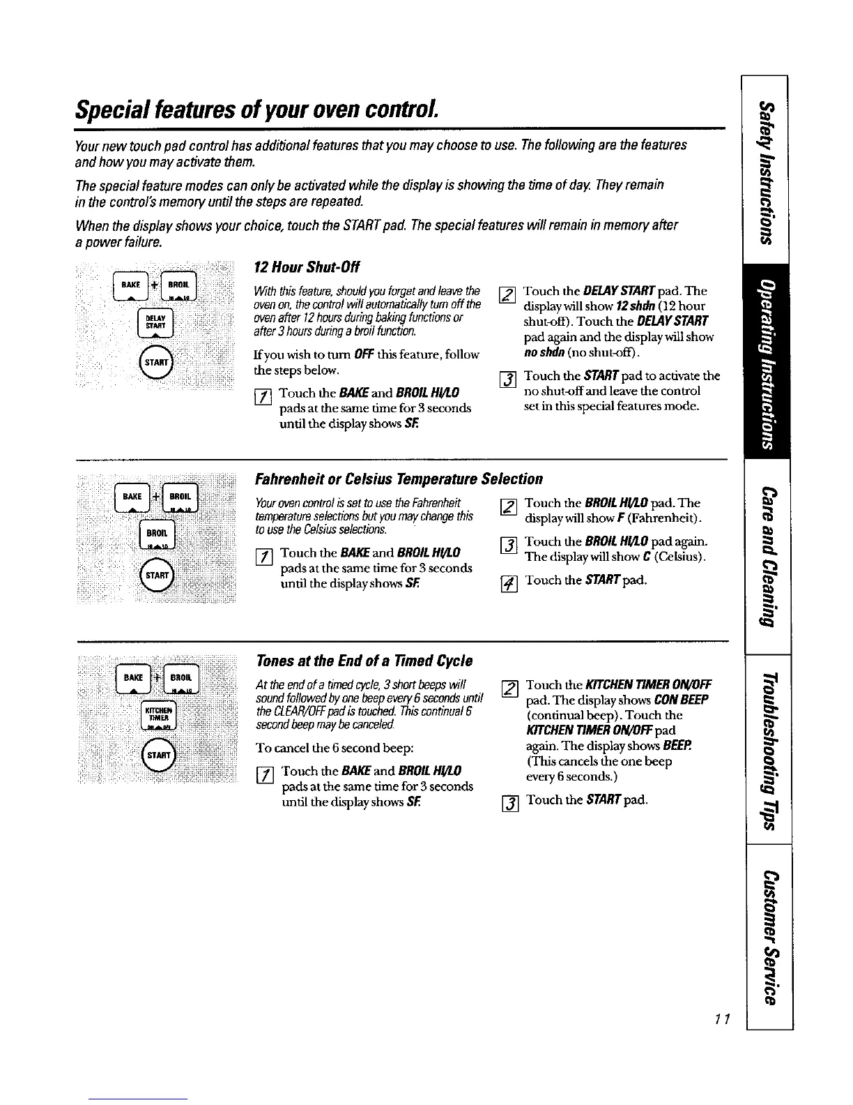 Whenthe display shows your choice, touch the STARTpad. Thespecial features will remain in memory after