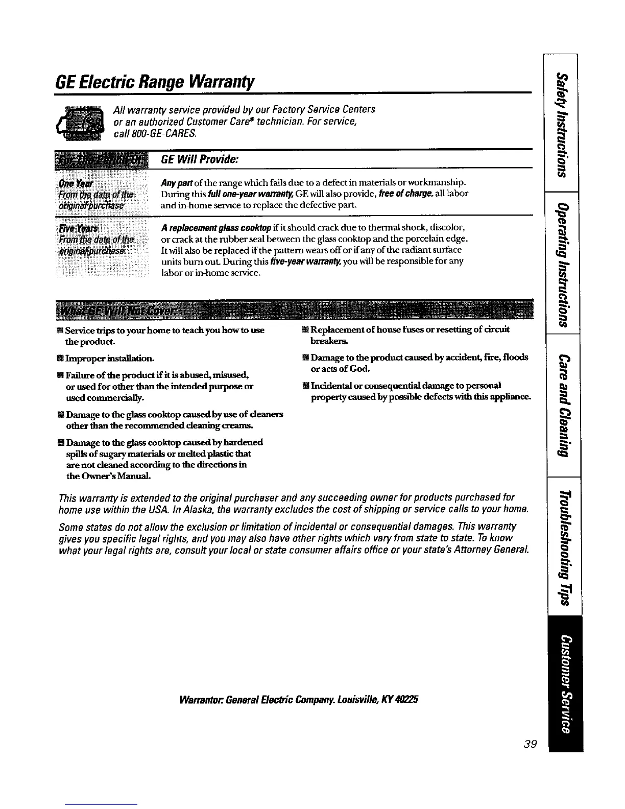 GEElectric Range Warranty