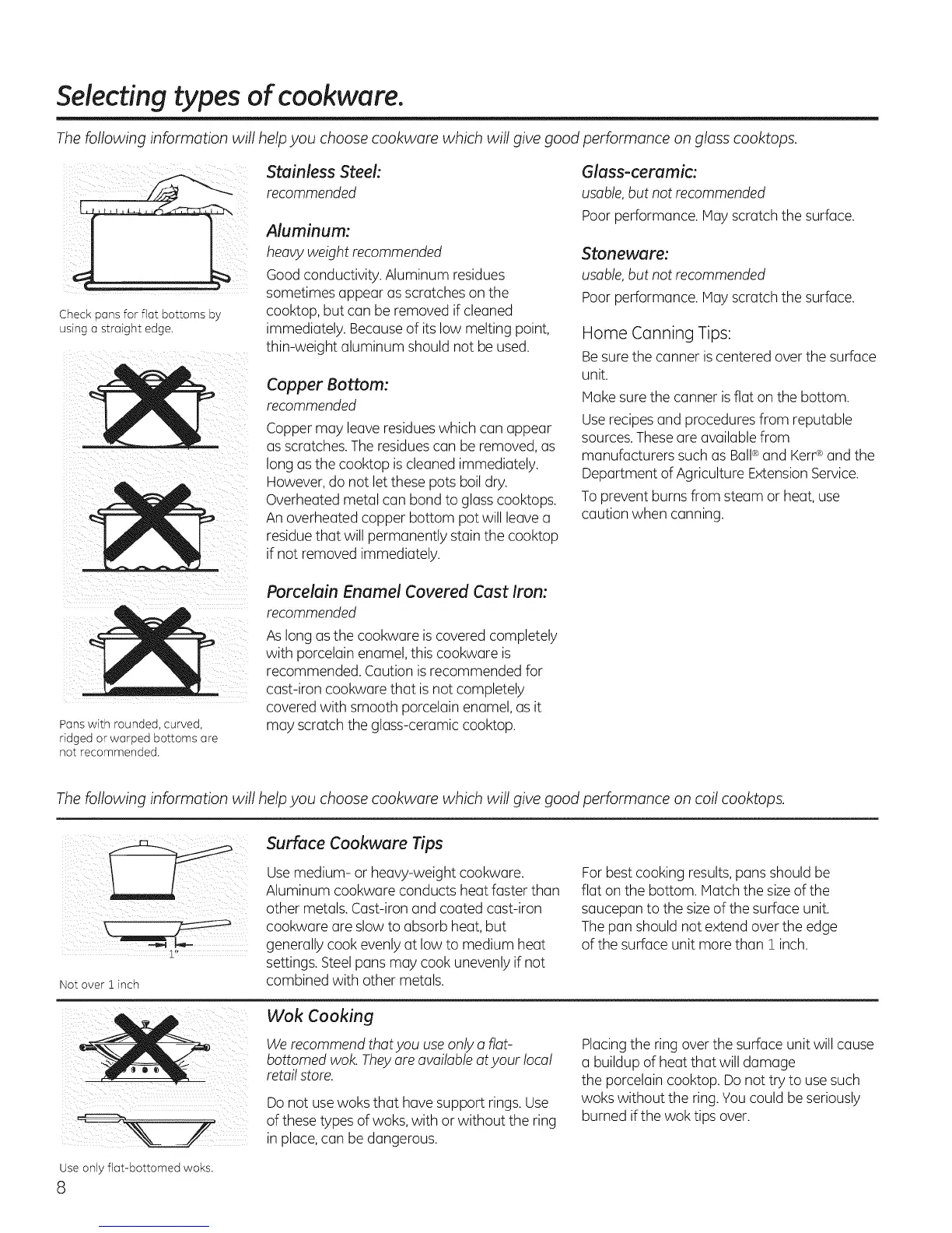 The following information will help you choose cookware which will give good performance on coil cooktops.