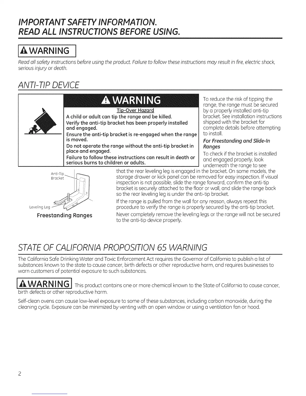 procedure to verify the range is properly secured by the anti-tip bracket.