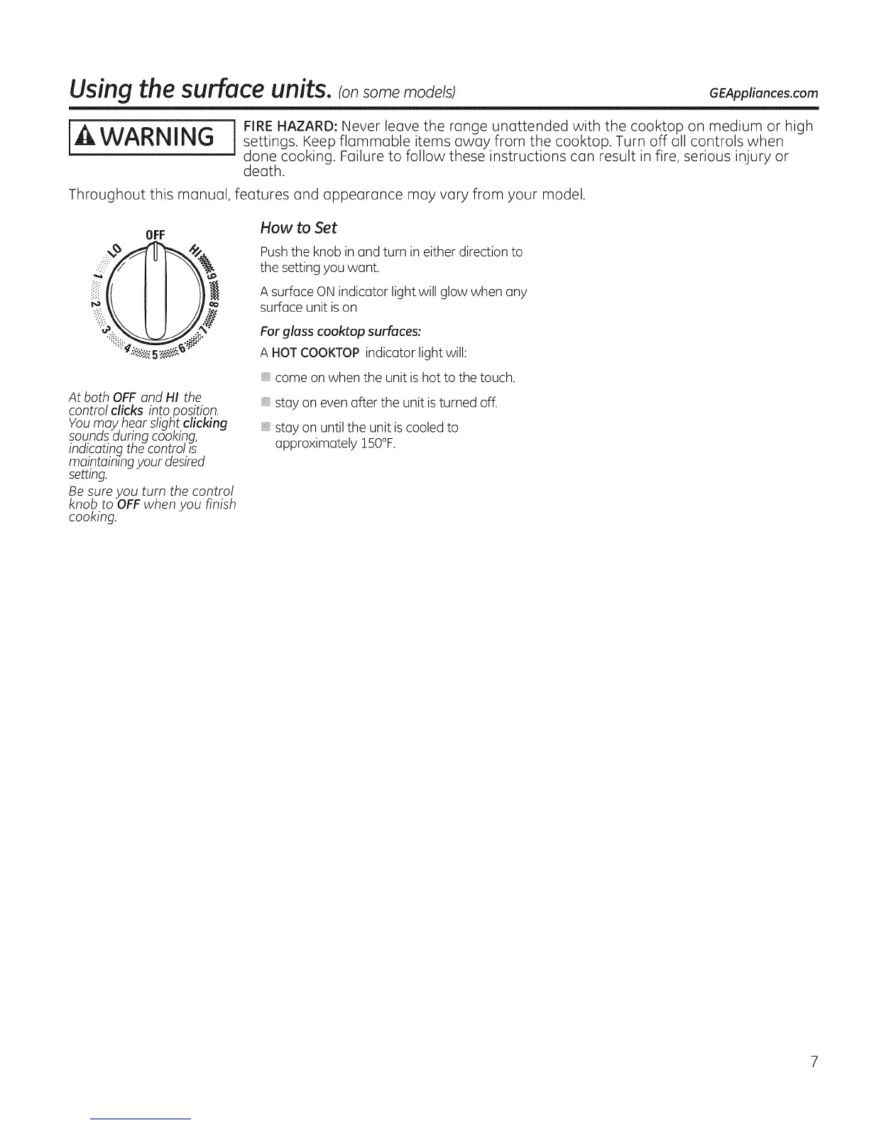 ":-usingthe surface units, consomemode sI GEAppliances.com
