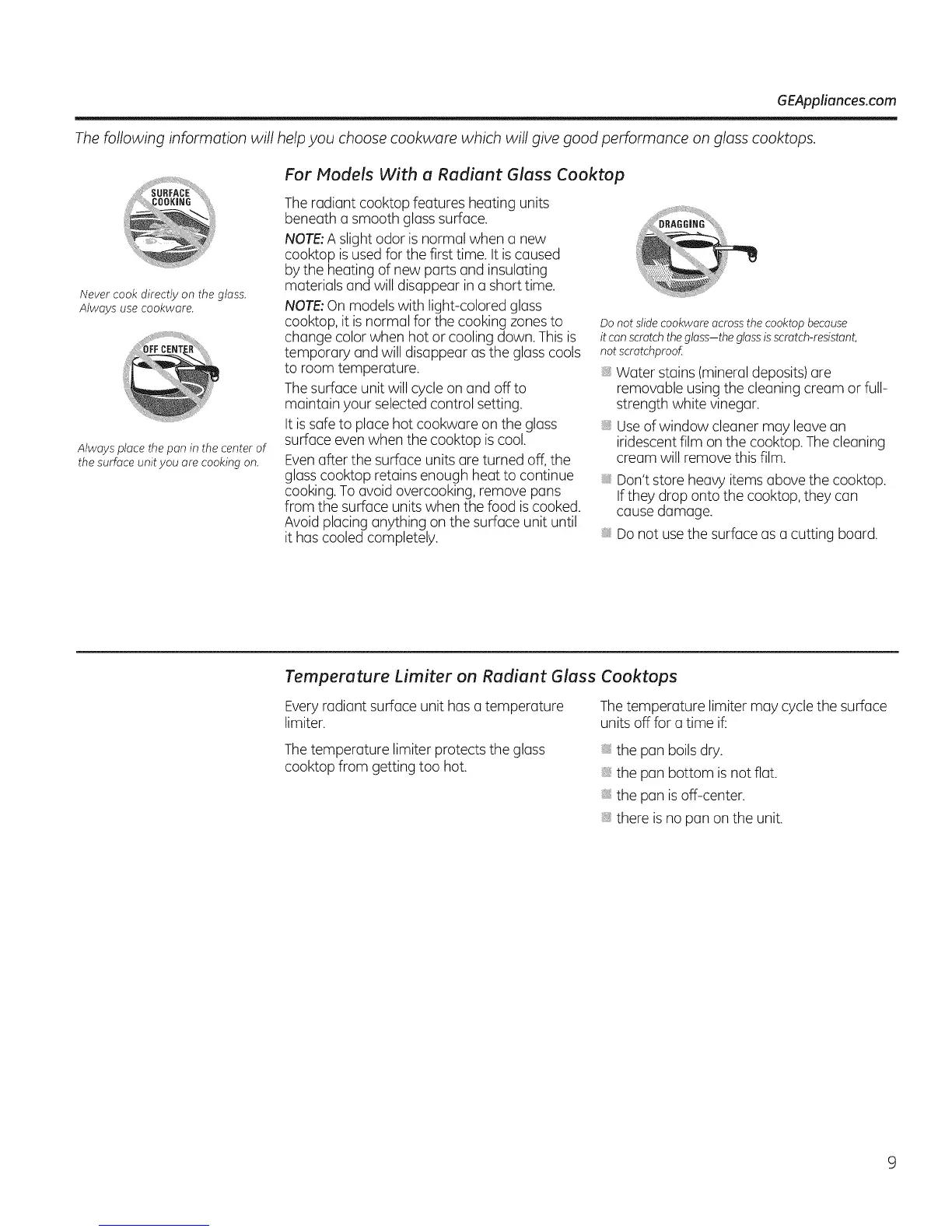 For Models With a Radiant G/ass Cooktop