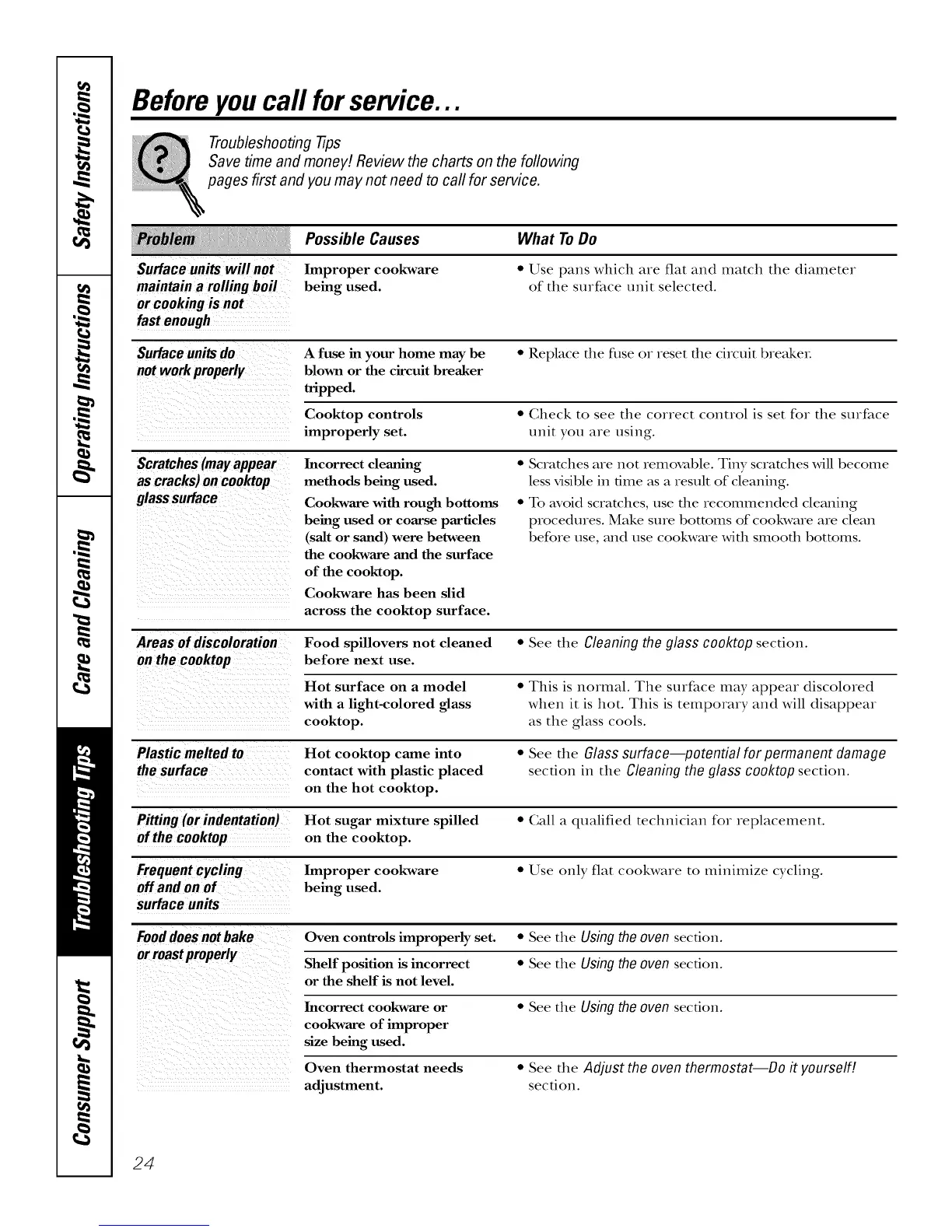 Areas of discoloration Food spillovers not cleaned * See the Cleaning the glass cooktop section.