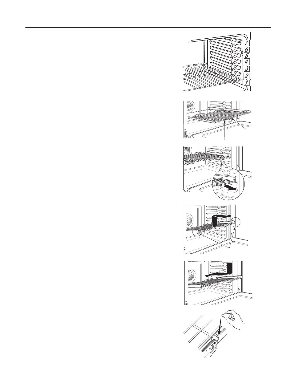 oven supports, tilt up the front of the rack and push it