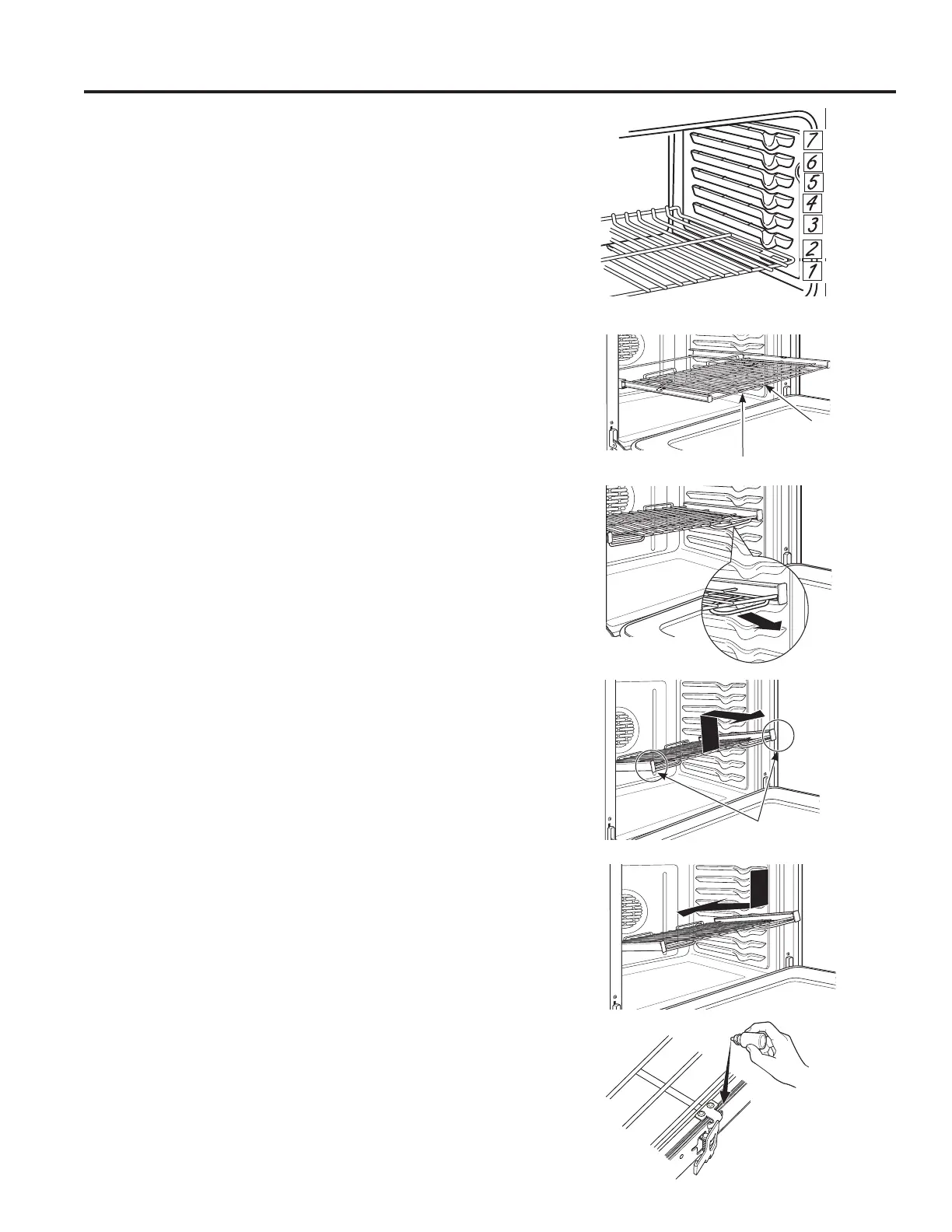 El horno cuenta con seis posiciones de estantes. En la Guía