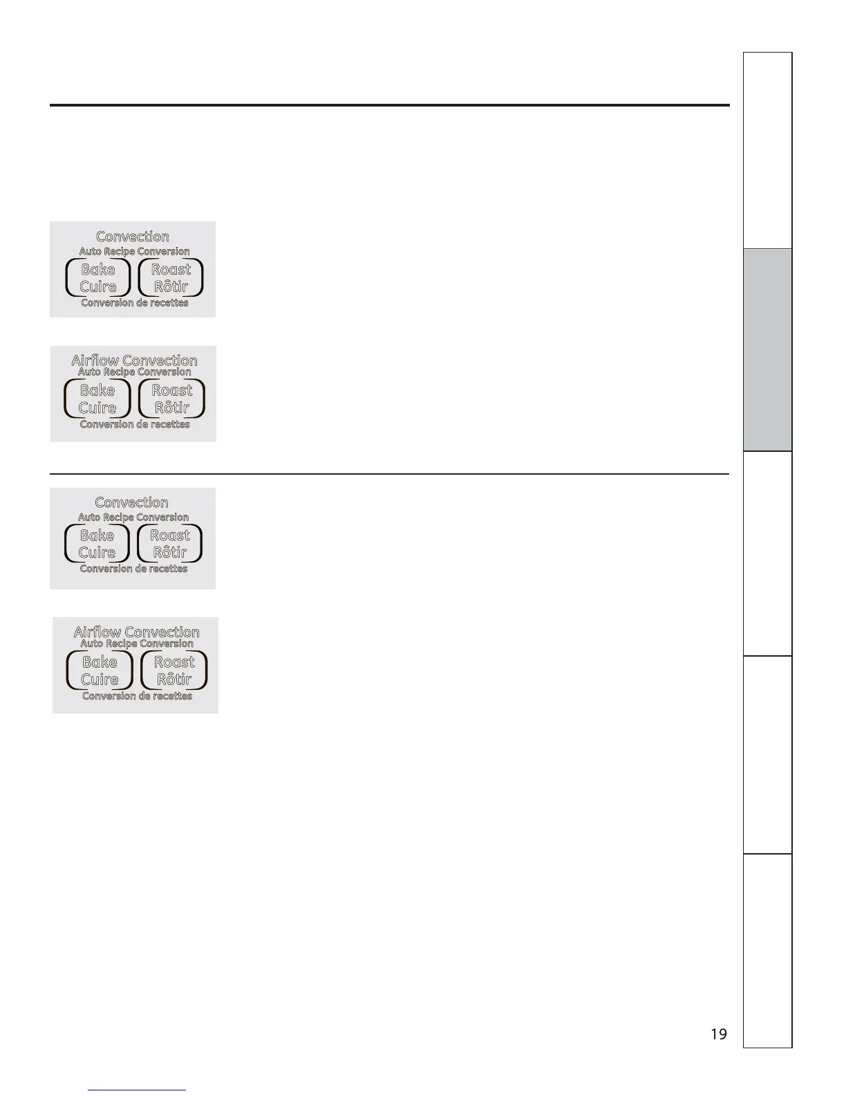Press desired convection function. Proceed to
