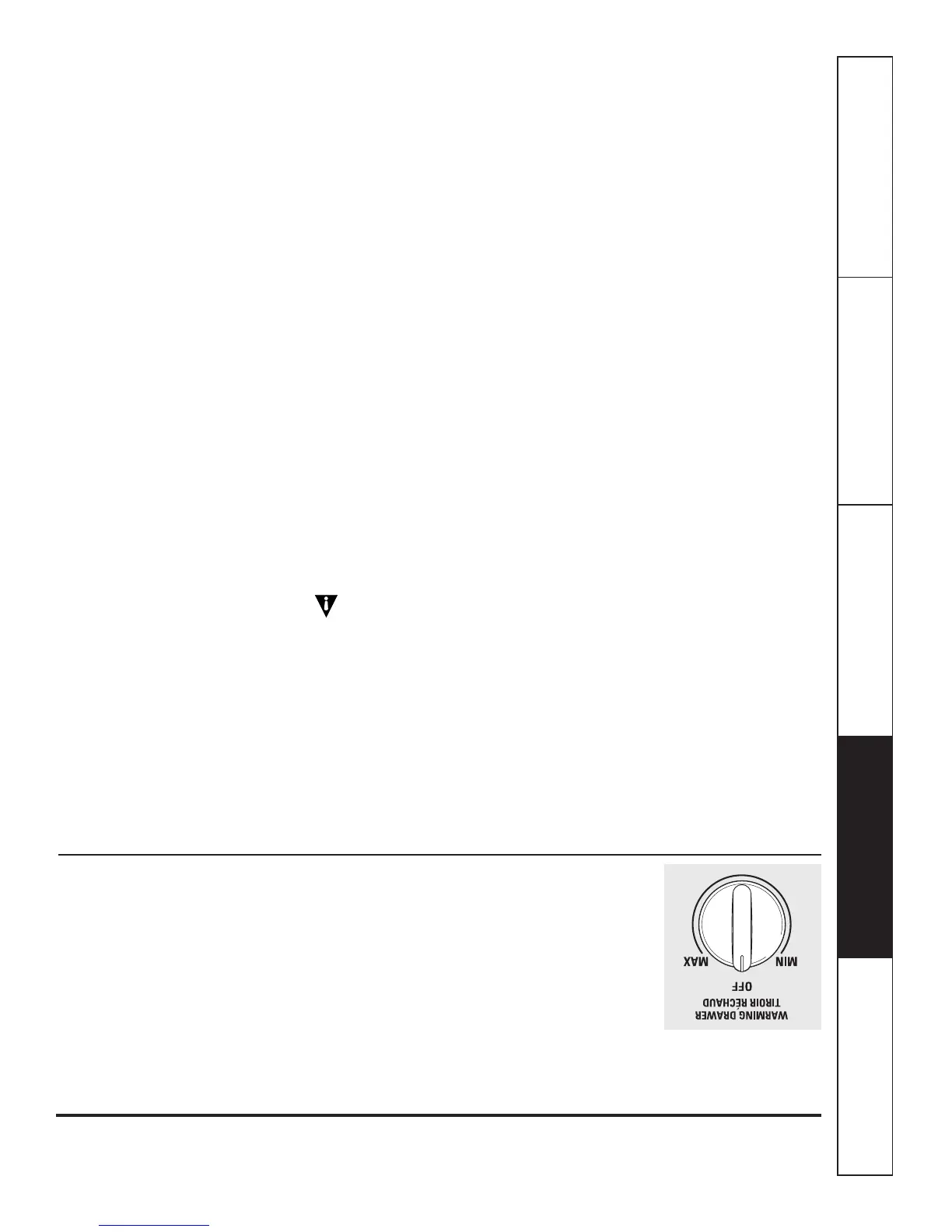 Utilisation du tiroir réchaud. (sur certains modèles)