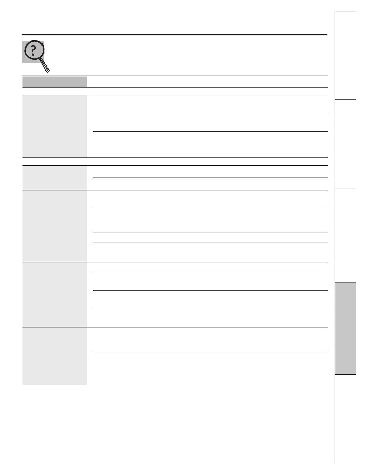 Oven light does not work Light bulb is loose or defective. •Tighten or replace the bulb.
