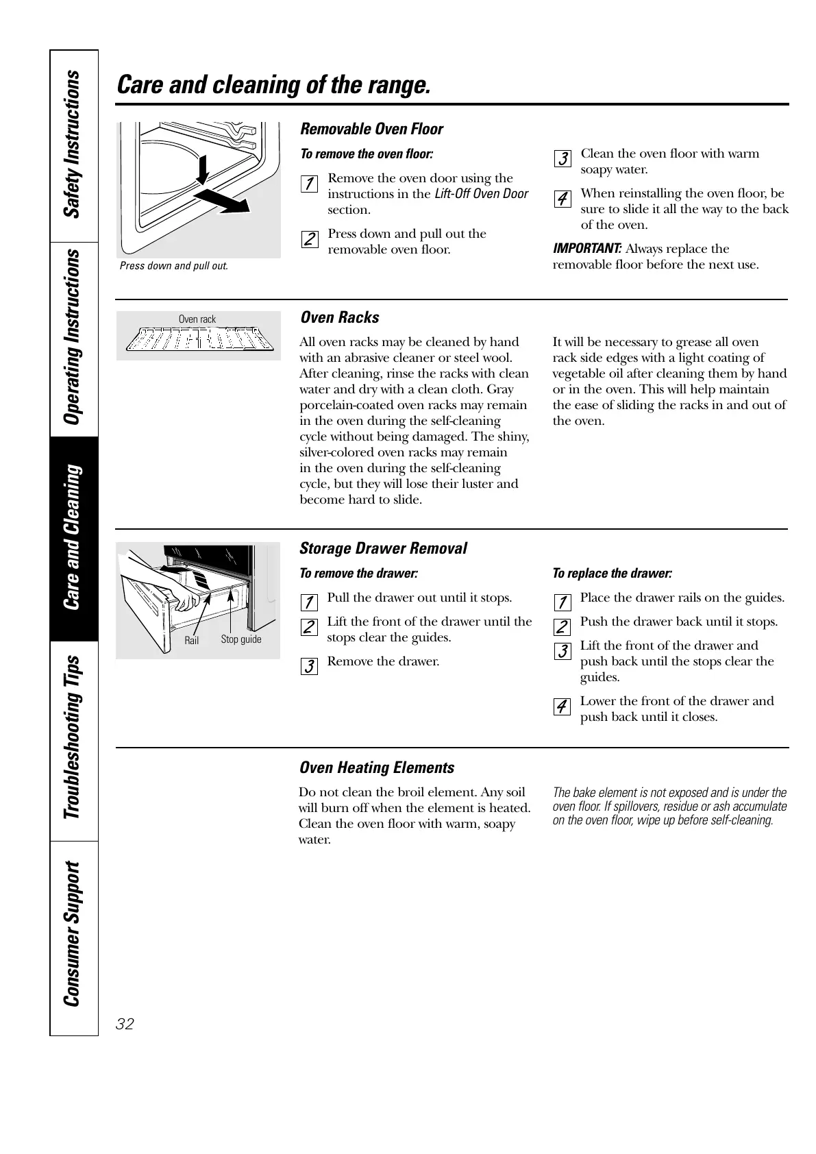 Consumer Support Troubleshooting Tips Care and Cleaning Operating Instructions Safety Instructions