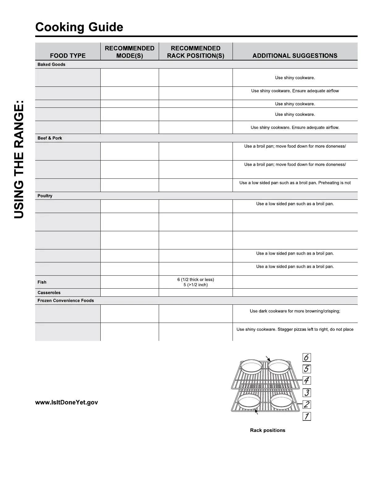 Watch food closely when broiling. For best performance center