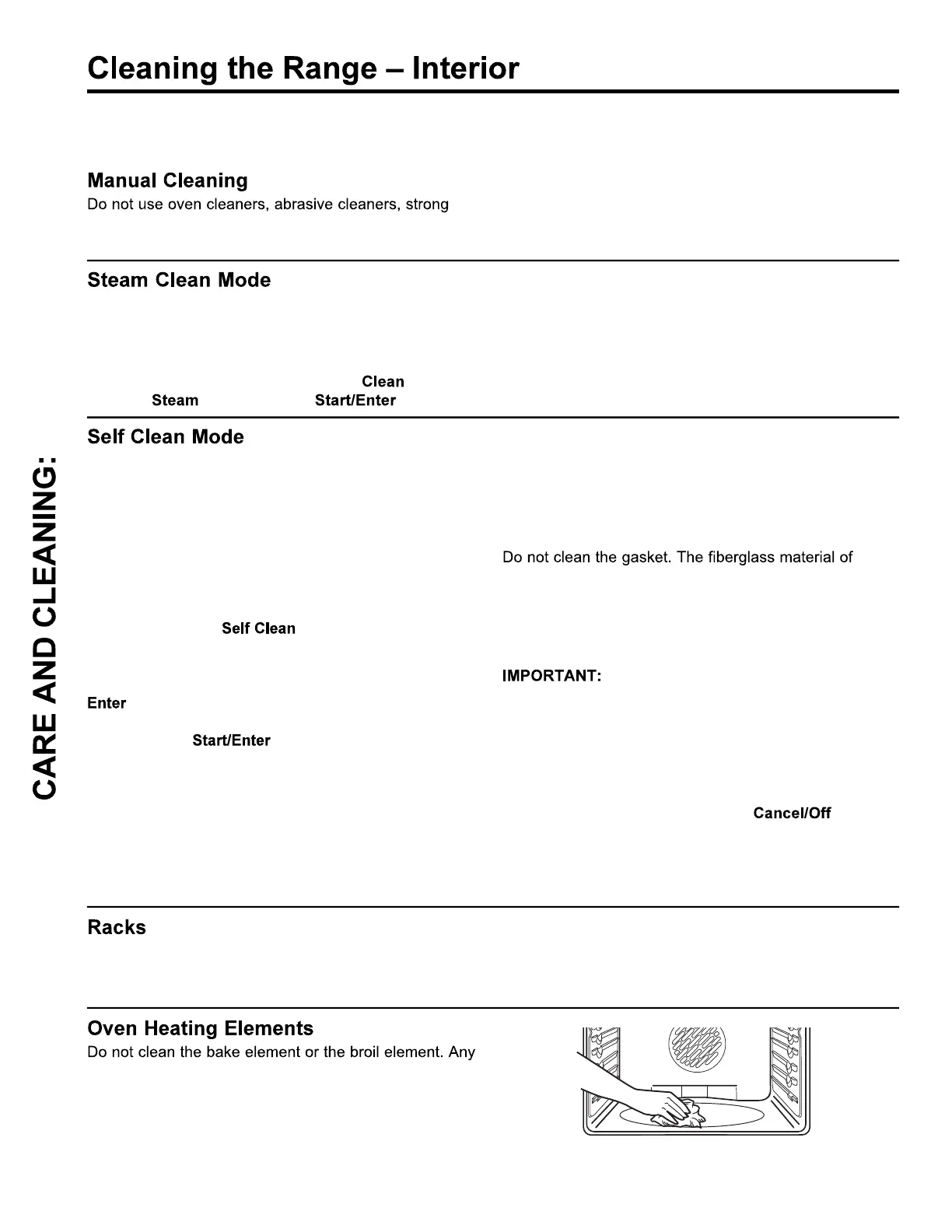 beginning of this manual before using Self Clean Mode.