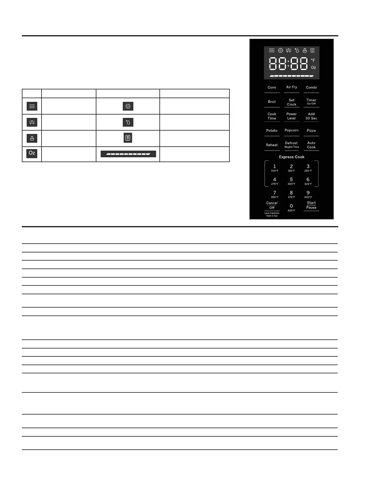 Express Cook (Cocción Express) Inicia el horno microondas con la cantidad de tiempo preconfigurada.