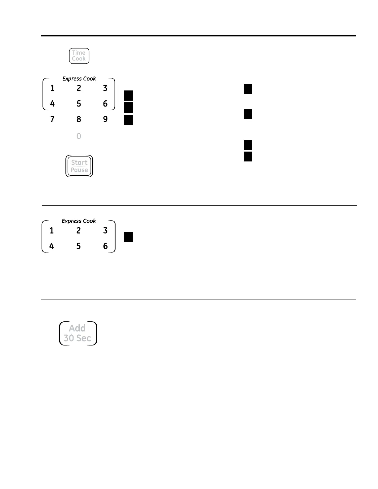 Press one of the Express Cook pads (from 1-6) for 1-6 minutes of cooking at power level