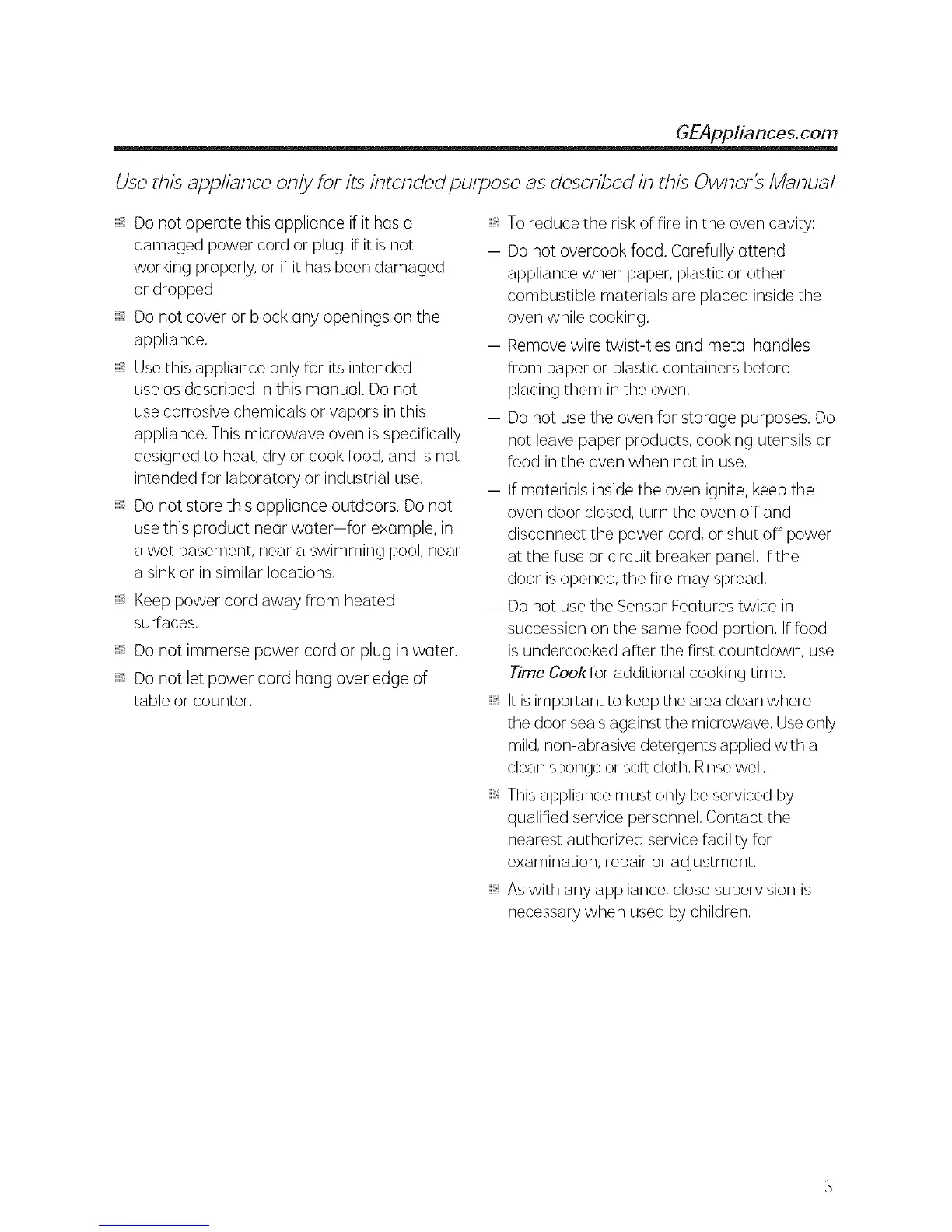 Use this appliance only for its intended purpose as described in this Owner's Manual