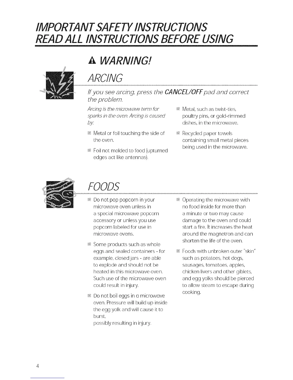 ff you see arcing, press the CANCEL/OFF pad and correct