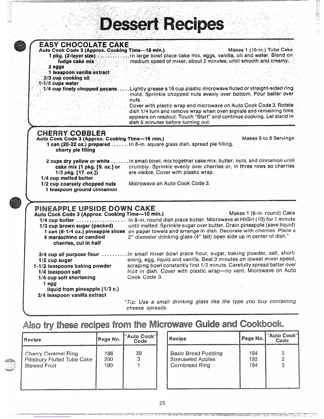 fruit in dish. Cover with plastic wrap—no vent. Microwave on Auto