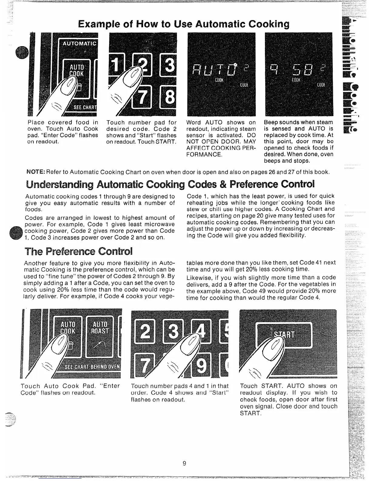 Automatic cooking codes 1 through 9 are designed to