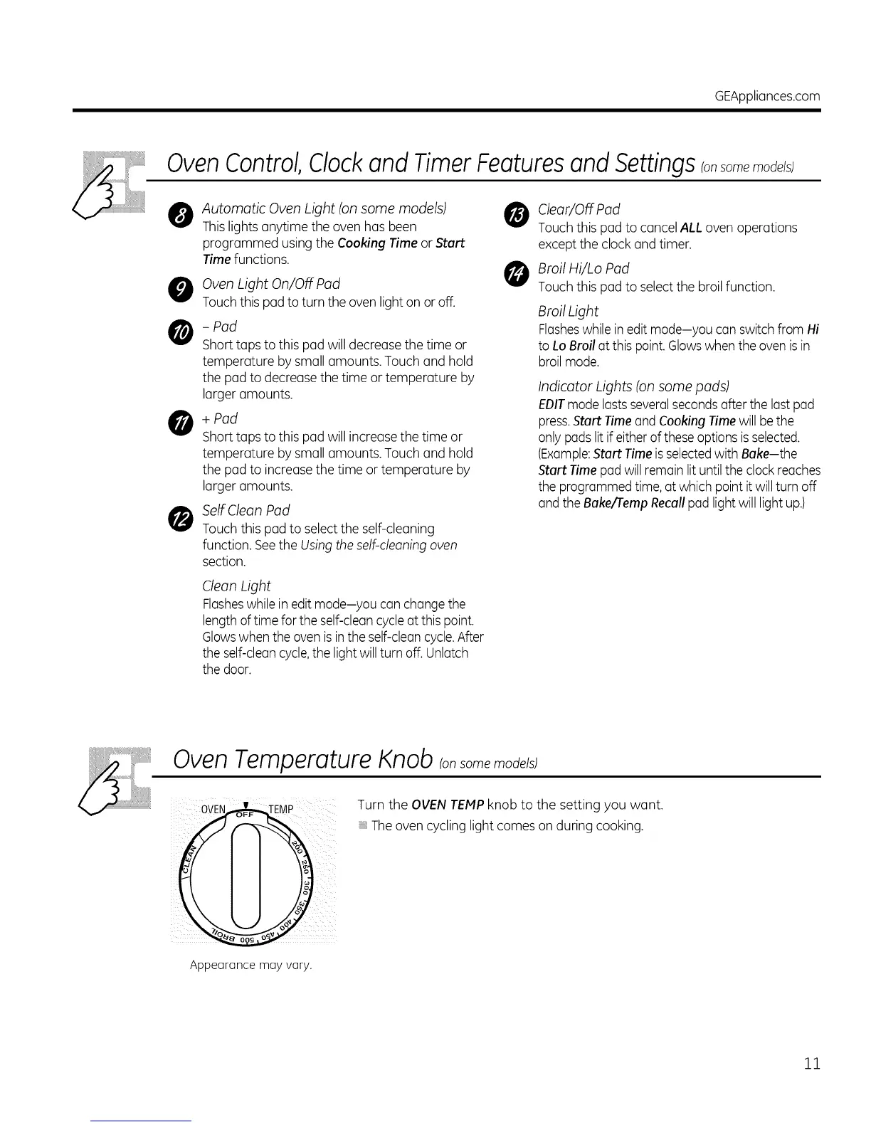 Oven Control, Clockand Timer Featuresand Settings;onsomemo e s;