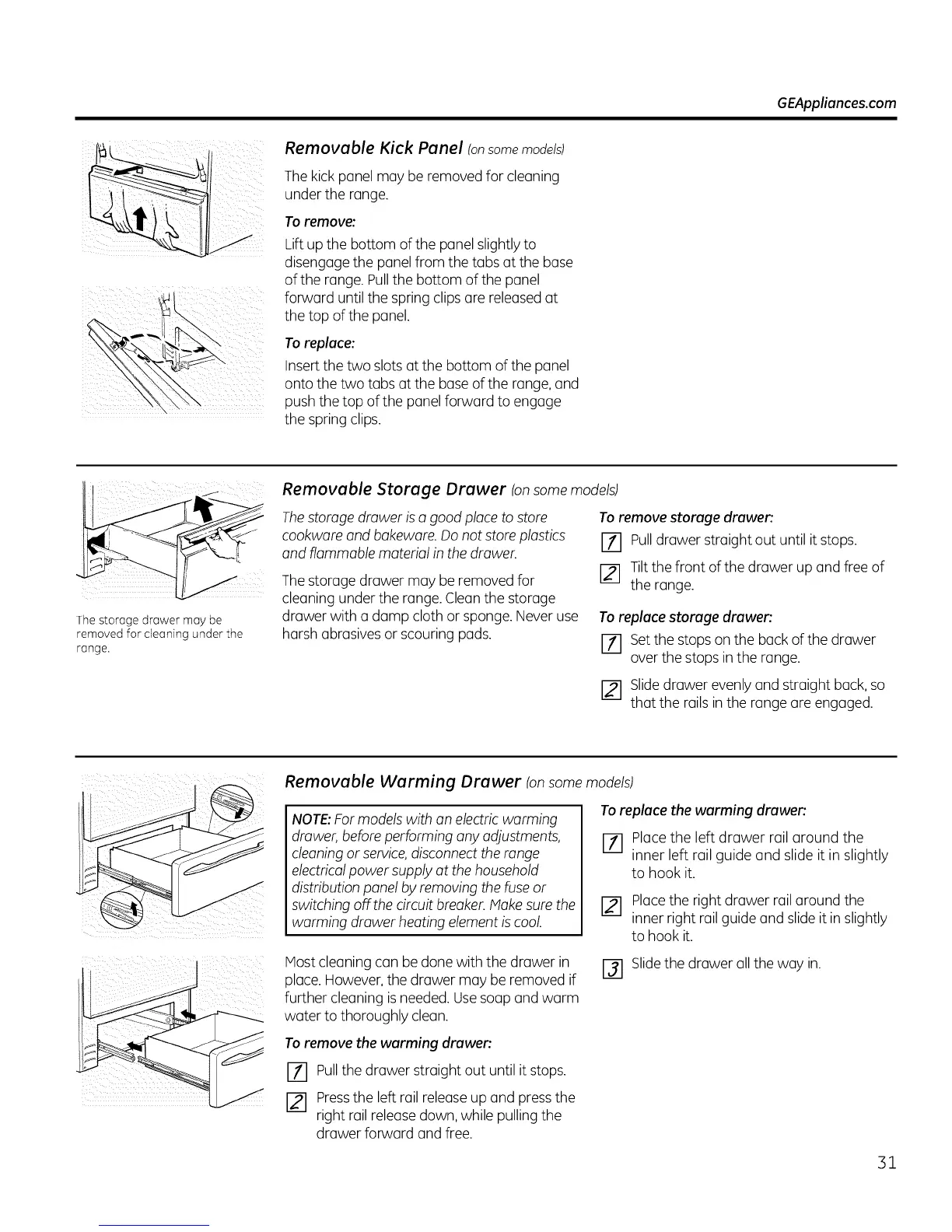 cleaning under the range. Cleanthe storage