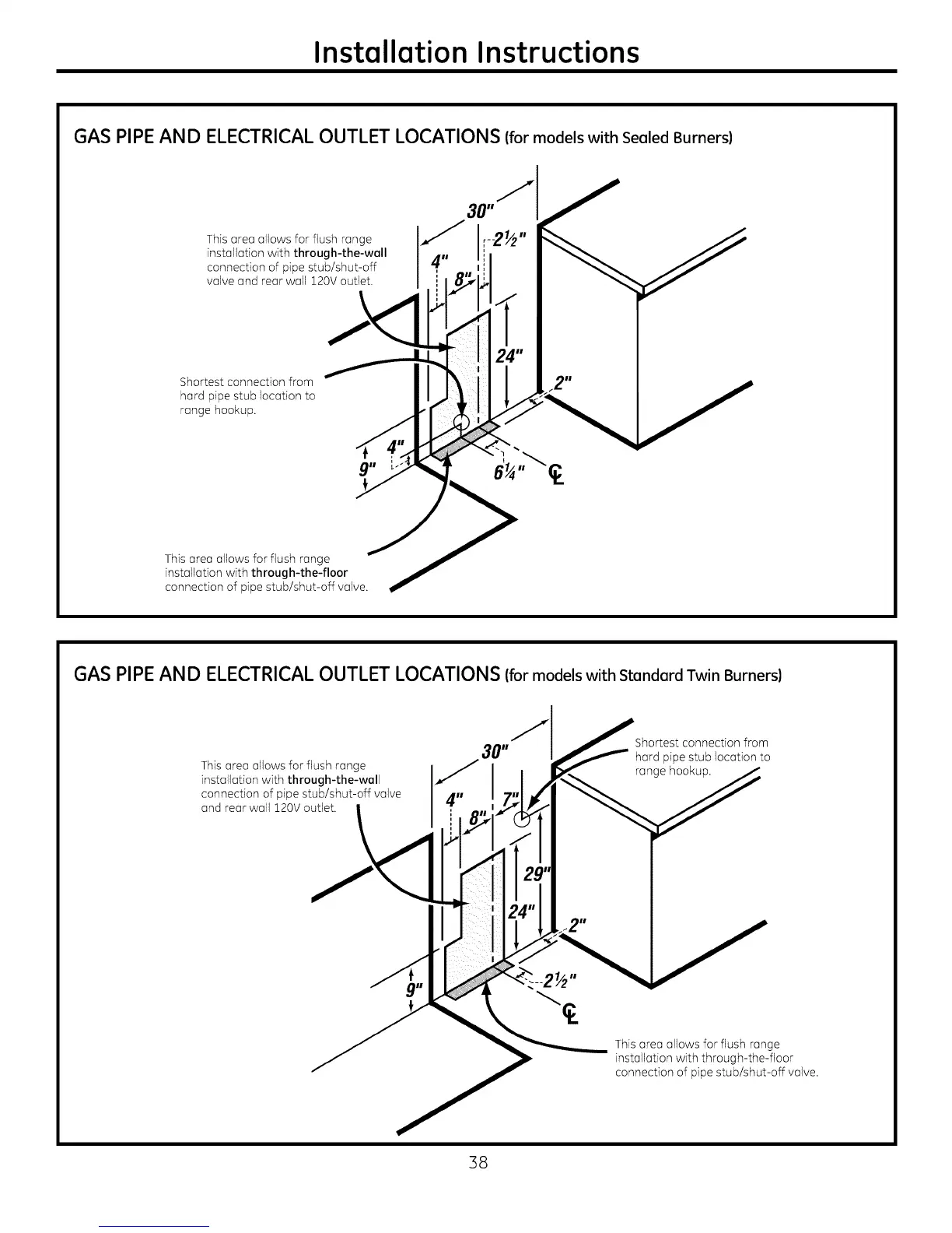 GAS PIPE AND ELECTRICAL OUTLET LOCATIONS (formodels with Sealed Burners)