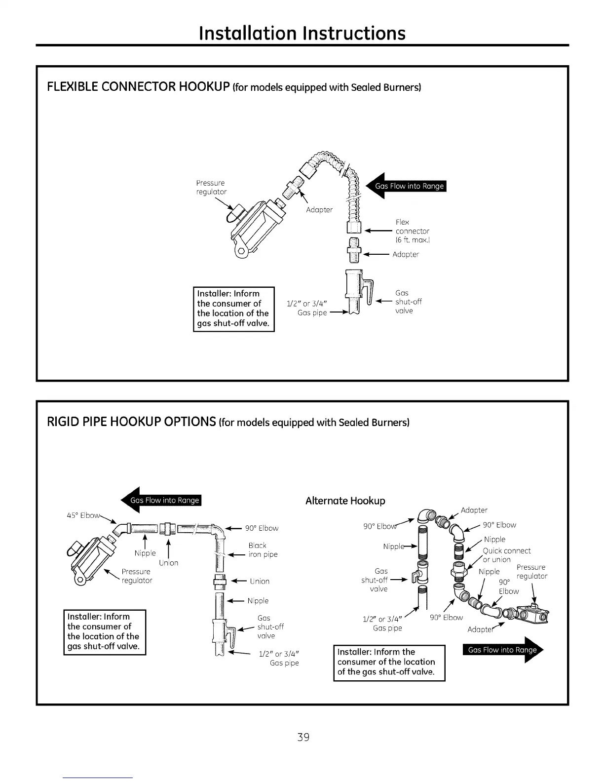 RIGID PIPE HOOKUP OPTIONS (for models equipped with Sealed Burners)
