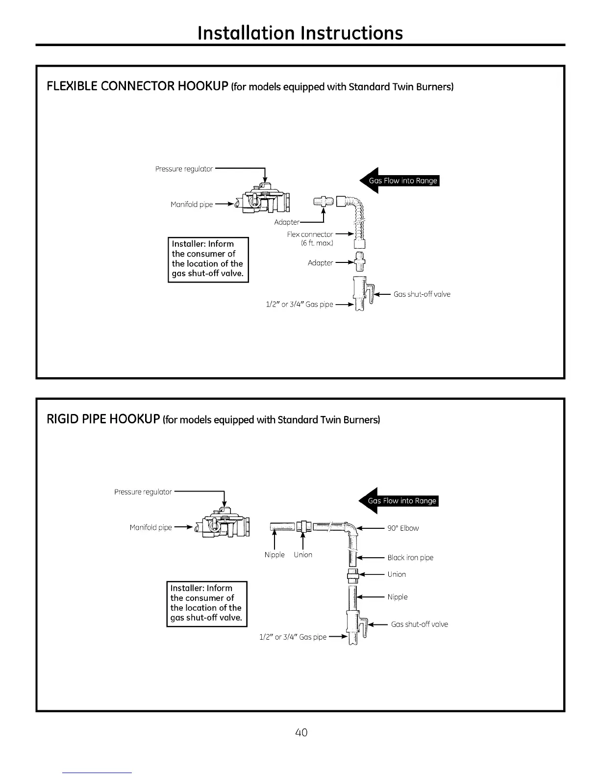 RIGID PIPE HOOKUP (for models equipped with Standard Twin Burners)