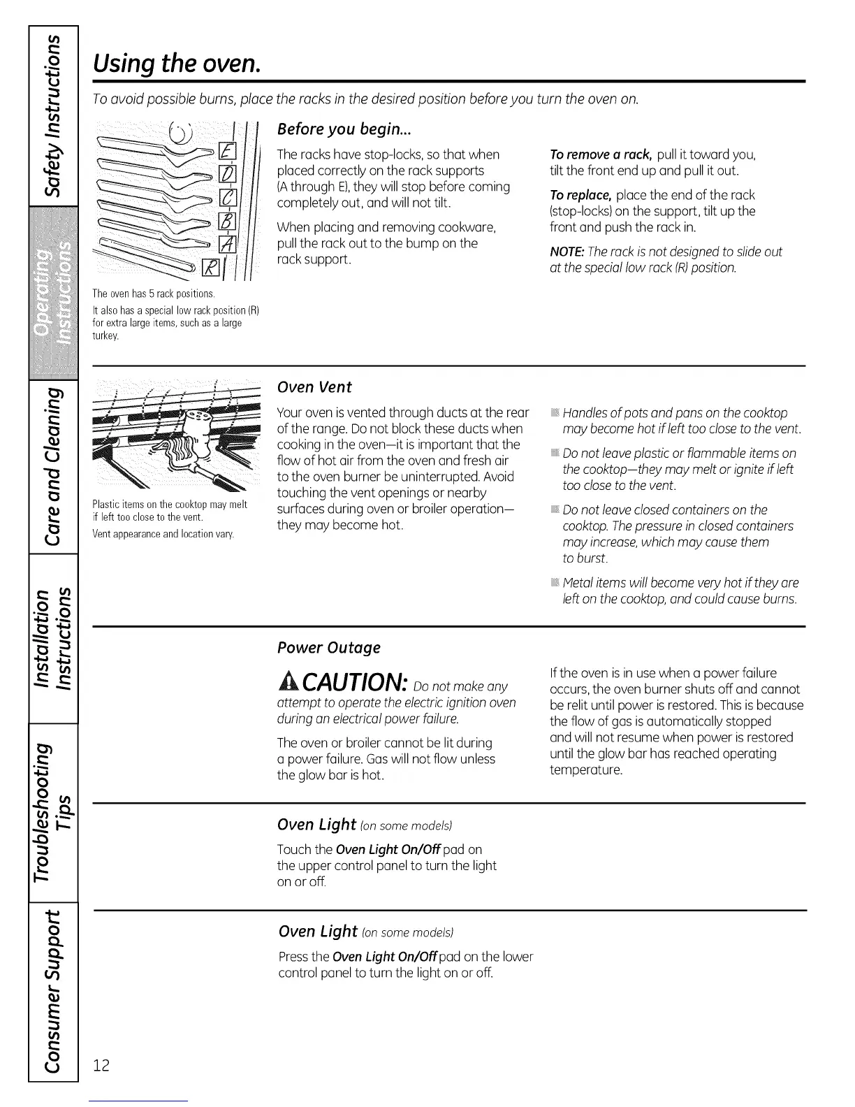 To avoid possible burns, place the racks in the desired position before you turn the oven on.