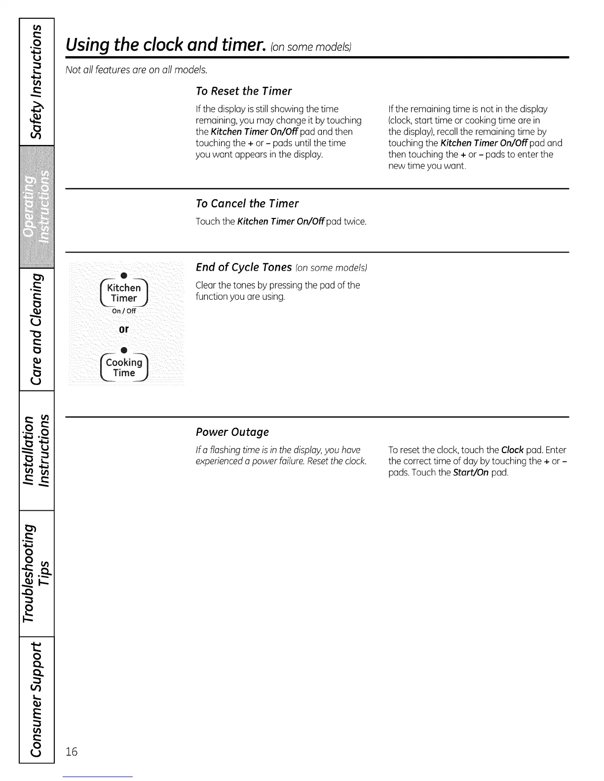 touching the Kitchen Timer On/Off pad and