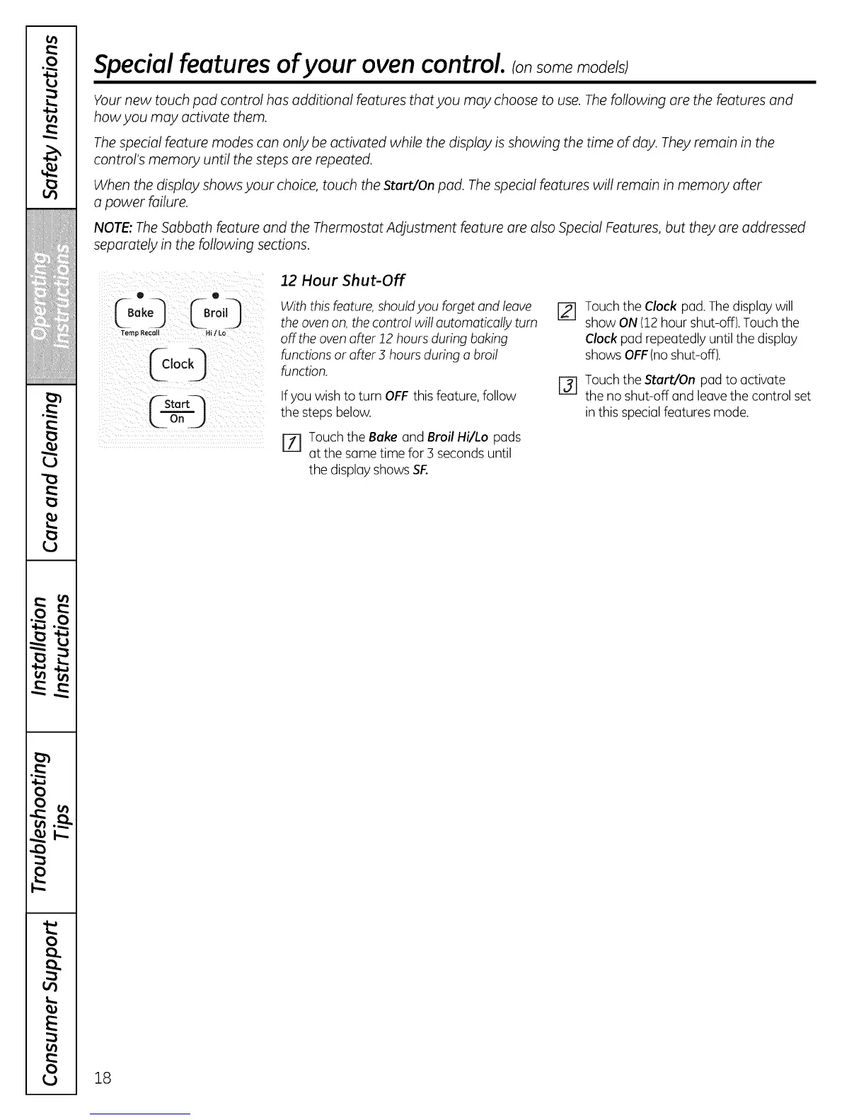 NOTE: The Sabbath feature and the Thermostat Adjustment feature are also Special Features, but they are addressed