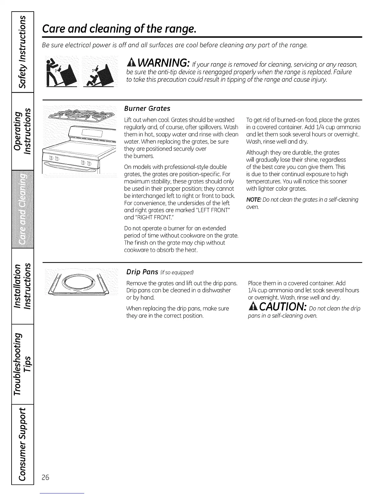 A WARNING: _fyourrangeisremovedforcleaning,se_icingoranyreason,be sure the anti-tip device is reengaged properly when the range is replaced. Failure