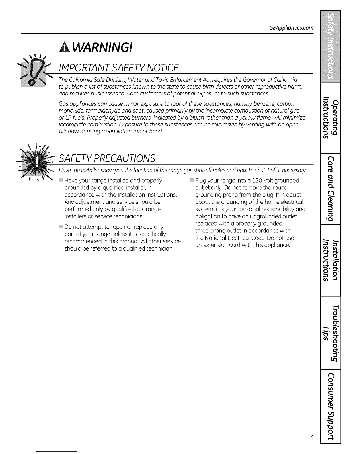 Have the installer show you the location of the range gas shut-off volve and how to shut it off if necessory.