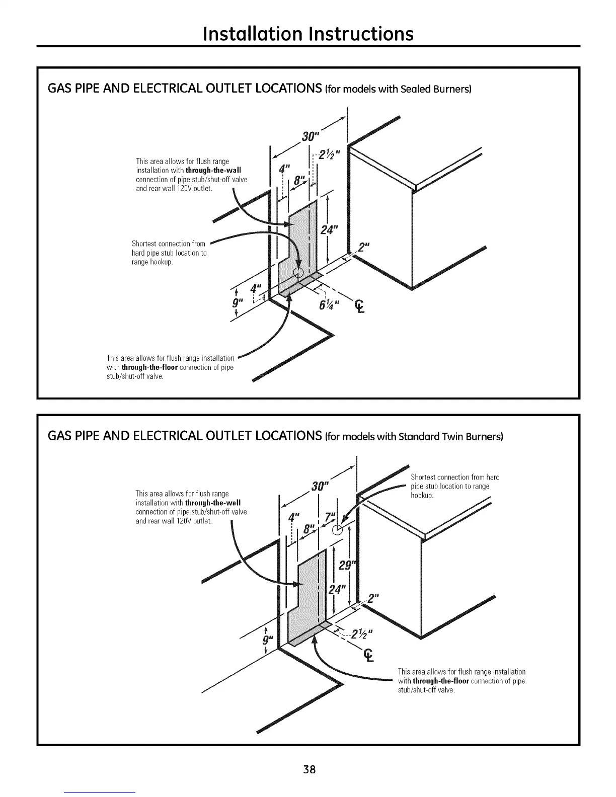 GAS PIPE AND ELECTRICAL OUTLET LOCATIONS (formodels with Sealed Burners)